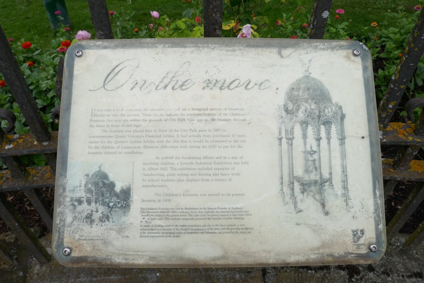 The fountain was placed here in front of the City Park gates in 1897 to commemorate Queen Victoria’s Diamond Jubilee. It had actually been purchased 10 years earlier for the Queen’s Golden Jubilee with the idea that it would be presented to the city by the children of Launceston. However difficulties with raising the £200 to pay for the fountain delayed its installation.